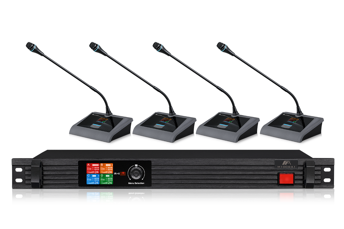 Up to 5 sets (20 conference transmitter) modulating methods under the same space and the same frequency band: